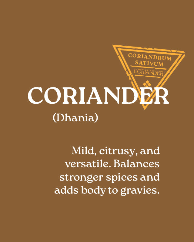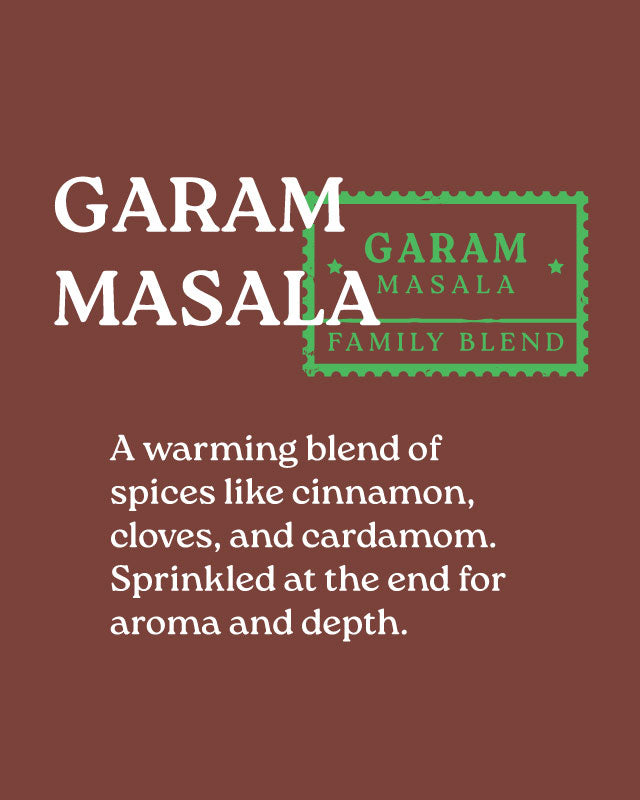 coriander, and chili. Roast till fragrant. Finish with garam masala.