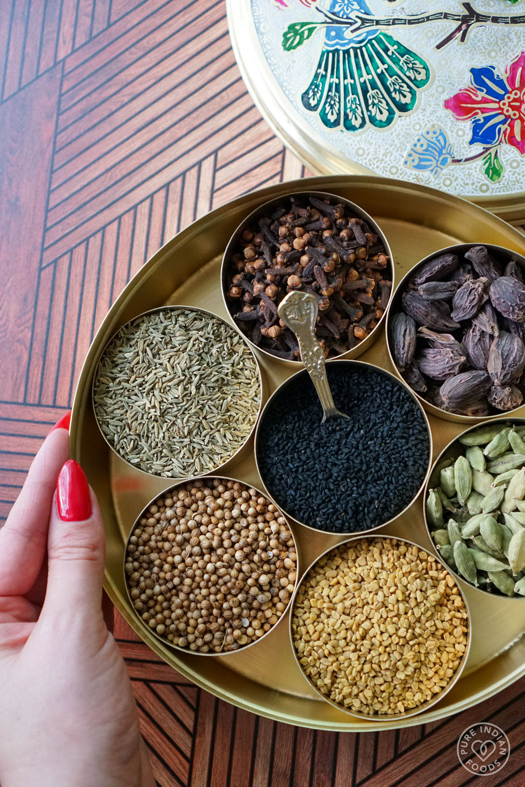 Also known as a Masala Dabba, an Indian Spice Box is an airtight tin containing 7 katori (small bowls) used to store and preserve spices in the typical Indian kitchen. Because they're not only functional, but pretty, their popularity around the world is growing exponentially.