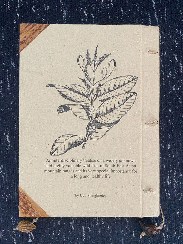 A biography of a threatened medicine tree of the Asian forests and its deep connection with central Buddhist medicine teachings, its history, mythology, pharmacology and latest scientific research results along with ancient Ayurveda source translations and advices on today’s applicability. Hardbound book with natural grass rope and 3 real dry myrobalan fruits. The book contains more than 45 related pictures, facsimiles of old texts, scientific data - ethnological knowledge of different Asian nations and their mythological inter-connections revolving around this special botanic species with cosmic symbolic importance.