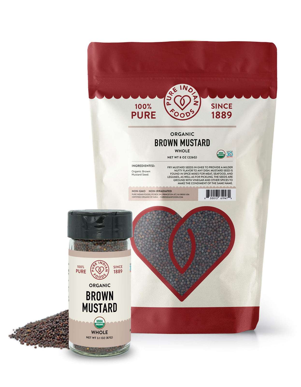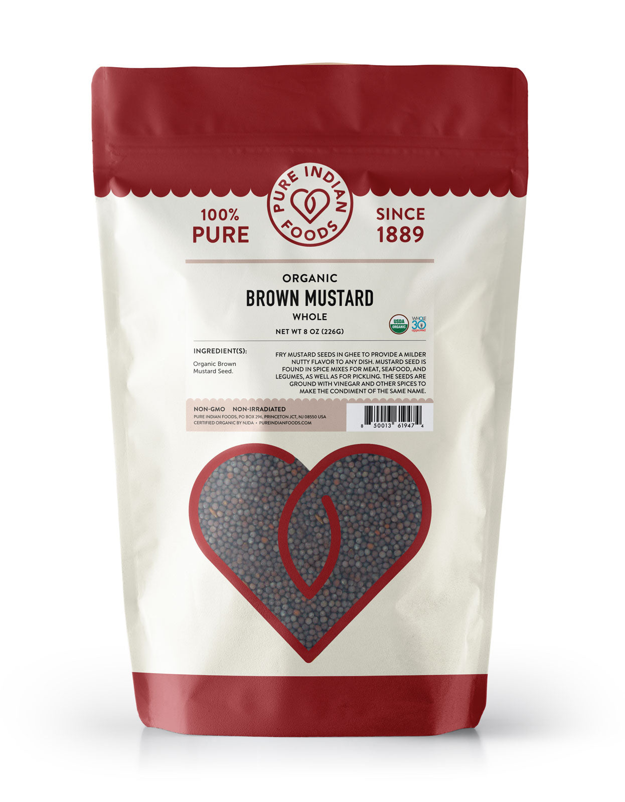 The white mustard is the easiest to grow and most common. Brown mustard and black mustard are harder to find and prized for their sharper flavor. Pure Indian foods provides only the highest quality mustard seed for you to use in your culinary adventures.