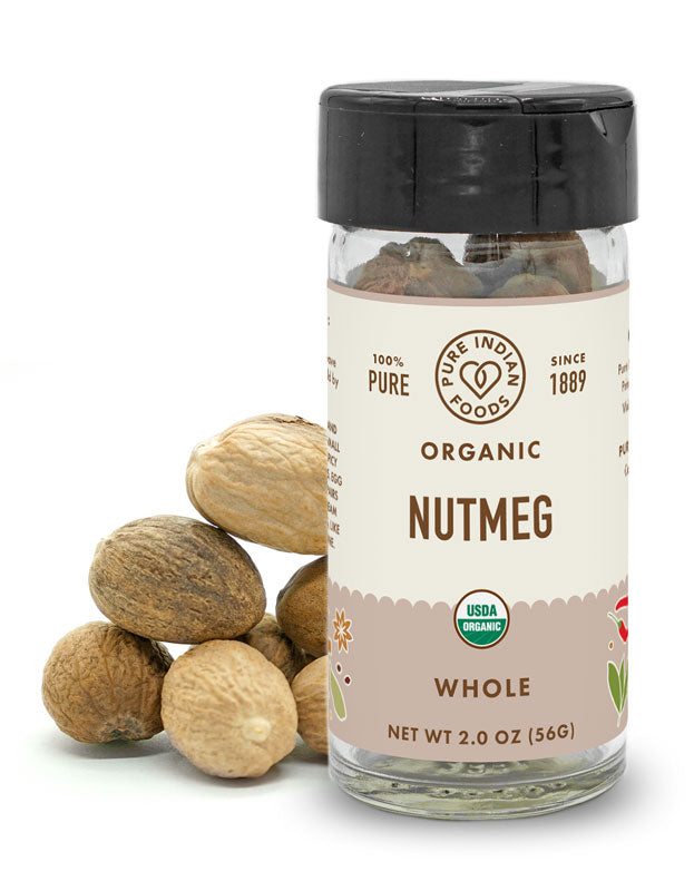 Origin: Nutmeg is the seed kernel of a large evergreen tree, originally from the Spice Islands of Indonesia. Nutmeg is found inside the small peach-shaped fruit of the tree, surrounded by a dark hard shell which is covered in bright red, wax-like arils that become the spice, Mace.
